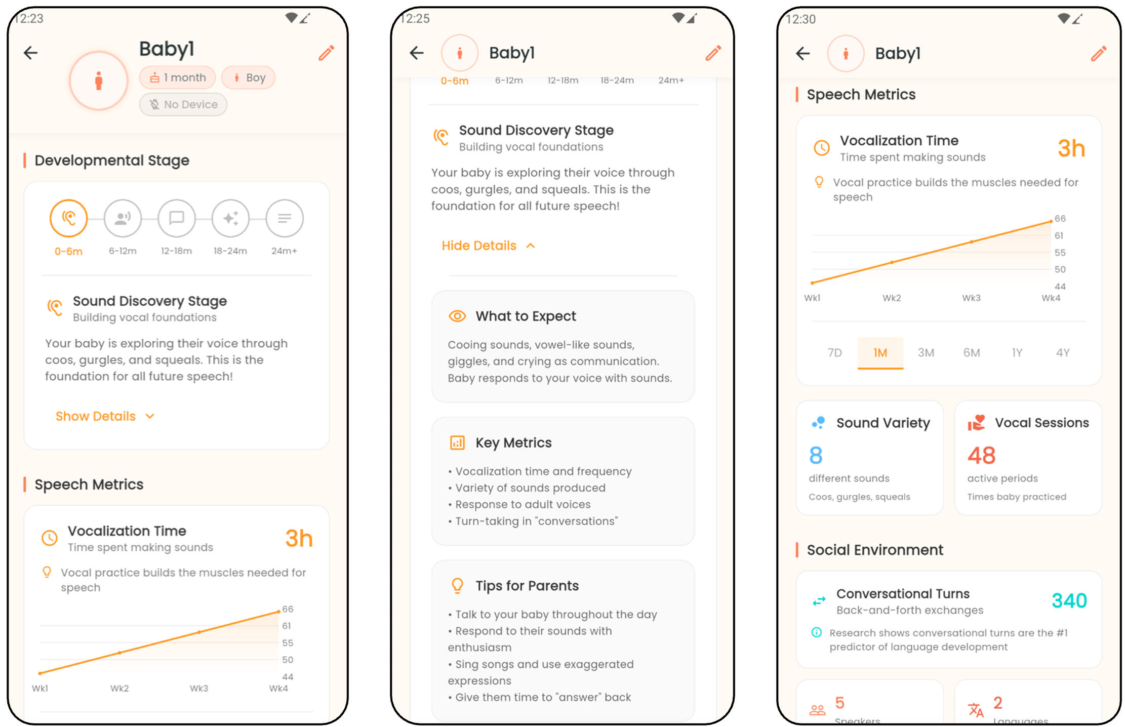Solivie's AI compares your baby's daily patterns to age-normed developmental milestones — then delivers clear, personalized insights straight to your phone. See what's on track, what to focus on, and how your baby is growing over time.